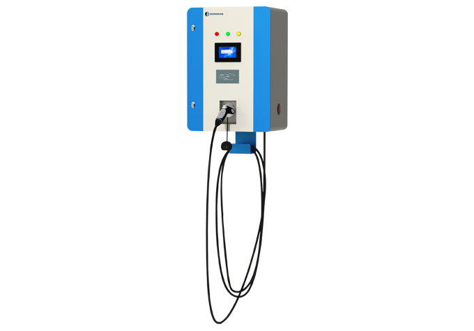 交流壁掛式充電樁(商用/家用兩用),為電動(dòng)汽車(chē)提供交流慢速充電。主要由人機(jī)交互單元、控制單元、計(jì)量單元、安全防護(hù)單元組成,外觀小巧美觀。